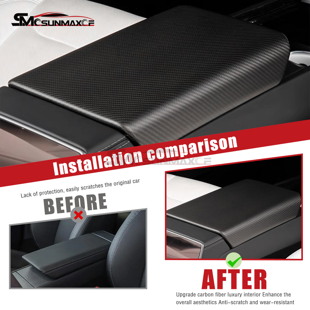Housse d'accoudoir central en fibre de carbone pour Tesla Model 3 Highland 2024